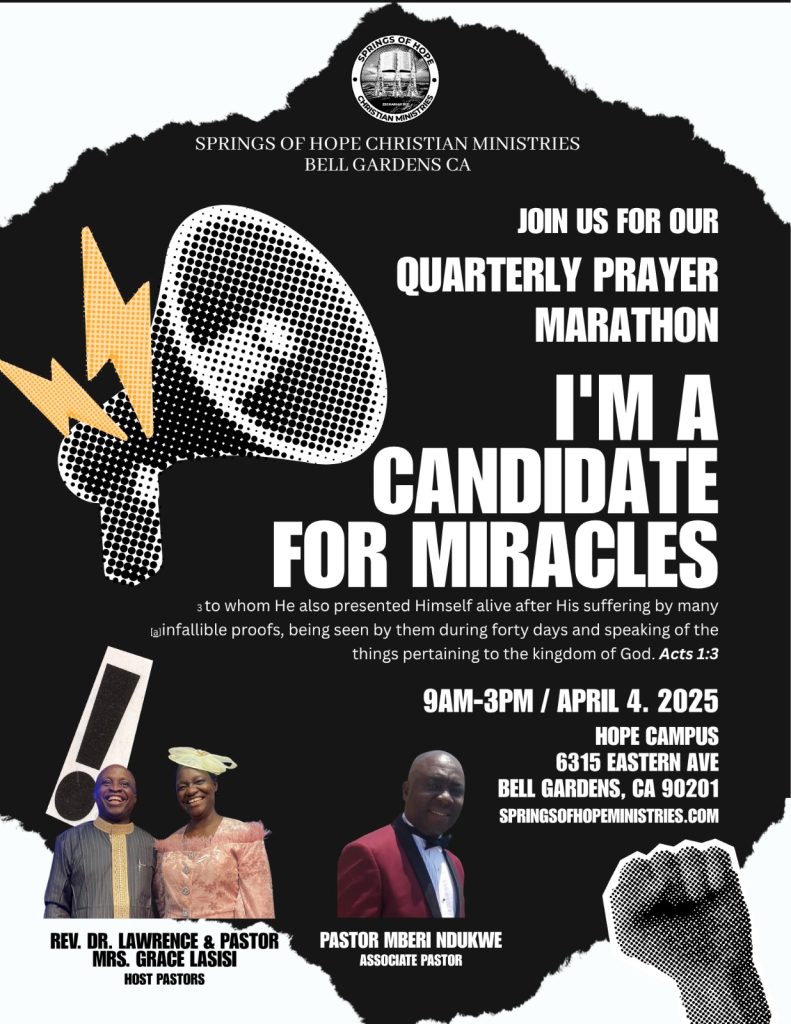 On Saturday April 4th from 9am to 3pm, join us for our new quarterly Prayer Marathon program! Be ready to become a Candidate for Miracles!